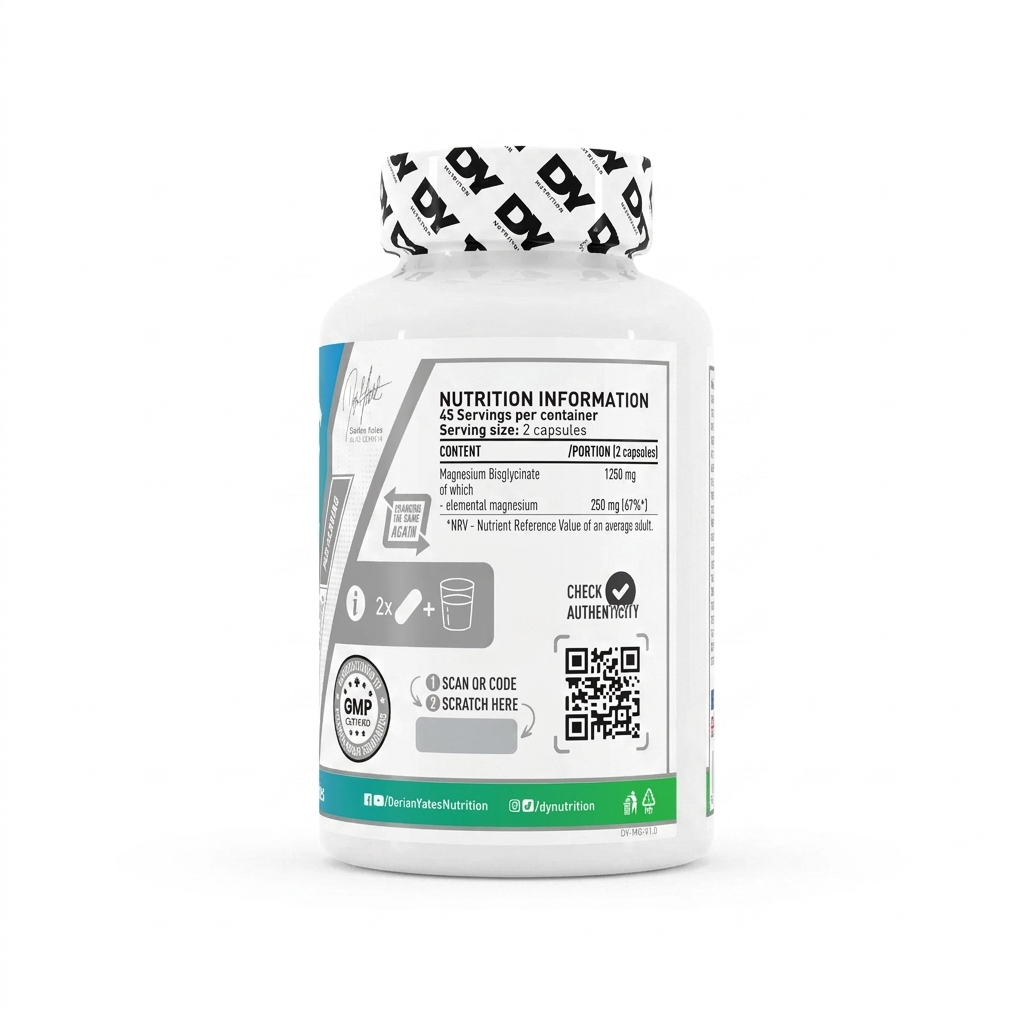 Dorian Yates (DY) - Magnesium Bisglycinate offers a highly bioavailable form of magnesium, specifically formulated for those seeking peak efficiency and comfort. This chelated form ensures optimal mineral absorption without gastrointestinal distress, making it the perfect daily supplement for athletes and active individuals.