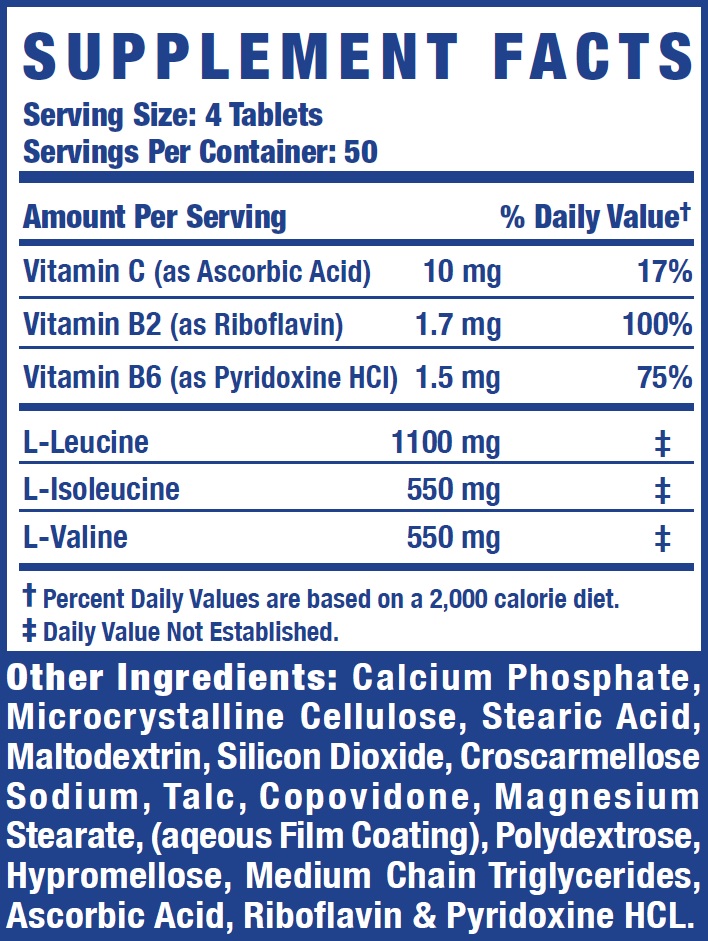 - Contains leucine, isoleucine, and valine in capsule form