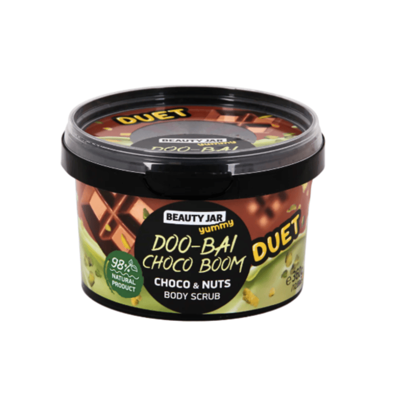 BEAUTY JAR - Doo-Bai Choco Boom Body Cream არის სხეულის ნოყიერი კრემი, რომელიც სპეციალურად შეიქმნა შოკოლადის მოყვარულთათვის კანის ინტენსიური დატენიანებისა და კვებისთვის. მისი ფორმულა გამდიდრებულია კაკაოს კარაქითა და ქოქოსის ზეთით, რაც უზრუნველყოფს მშრალი კანის მომენტალურ დალბილებას და მის აღდგენას. კრემს აქვს საოცრად თბილი და ტკბილი შოკოლადის არომატი, რომელიც დიდხანს რჩება სხეულზე და ქმნის სიმყუდროვისა და კომფორტის შეგრძნებას.