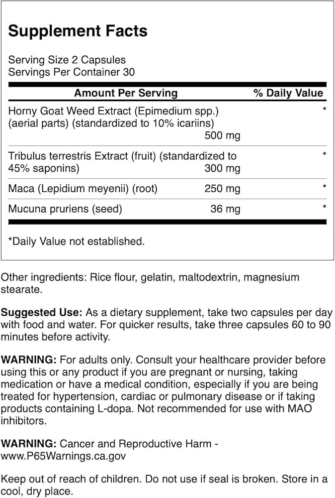 Swanson - Horny Goat Weed Extract არის ტრადიციული ჩინური მცენარე, რომელსაც საუკუნეების განმავლობაში იყენებენ როგორც ბუნებრივ აფროდიზიაკს და ენერგიის გამაძლიერებელს. მისი ძირითადი მოქმედება უკავშირდება სისხლის მიმოქცევის გაუმჯობესებას, ჰორმონალური ბალანსის მხარდაჭერას და სექსუალური ფუნქციის გაძლიერებას. მცენარის აქტიური ნივთიერება — იკარინი — ხელს უწყობს სისხლძარღვების გაფართოებას და ჟანგბადით უკეთ მომარაგებას, რაც დადებითად აისახება როგორც ფიზიკურ, ისე სექსუალურ გამძლეობაზე. გარდა ამისა, Horny Goat Weed ეხმარება დაღლილობის შემცირებაში, ამაღლებს ენერგიის დონეს და შეიძლება დადებითად იმოქმედოს სახსრებისა და კუნთების ჯანმრთელობაზე. ეს ფორმულა უზრუნველყოფს 500 მგ სუფთა ექსტრაქტს თითო კაფსულაში, რაც ხელს უწყობს ოპტიმალურ ეფექტს.