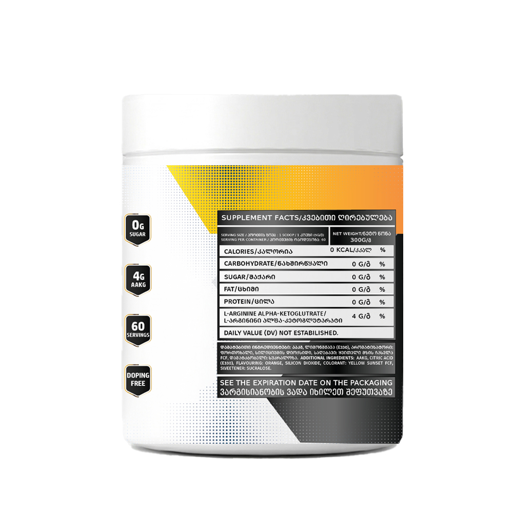 AAKG ეფექტური საშუალებაა ფამფისთვის და ძალისმიერი მონაცემების გასაუმჯობესებლად. იგი შეიცავს უმაღლესი ხარისხის ალფა-კეტოგლუტარტ L- არგინინის მაღალი კონცენტრაციით.