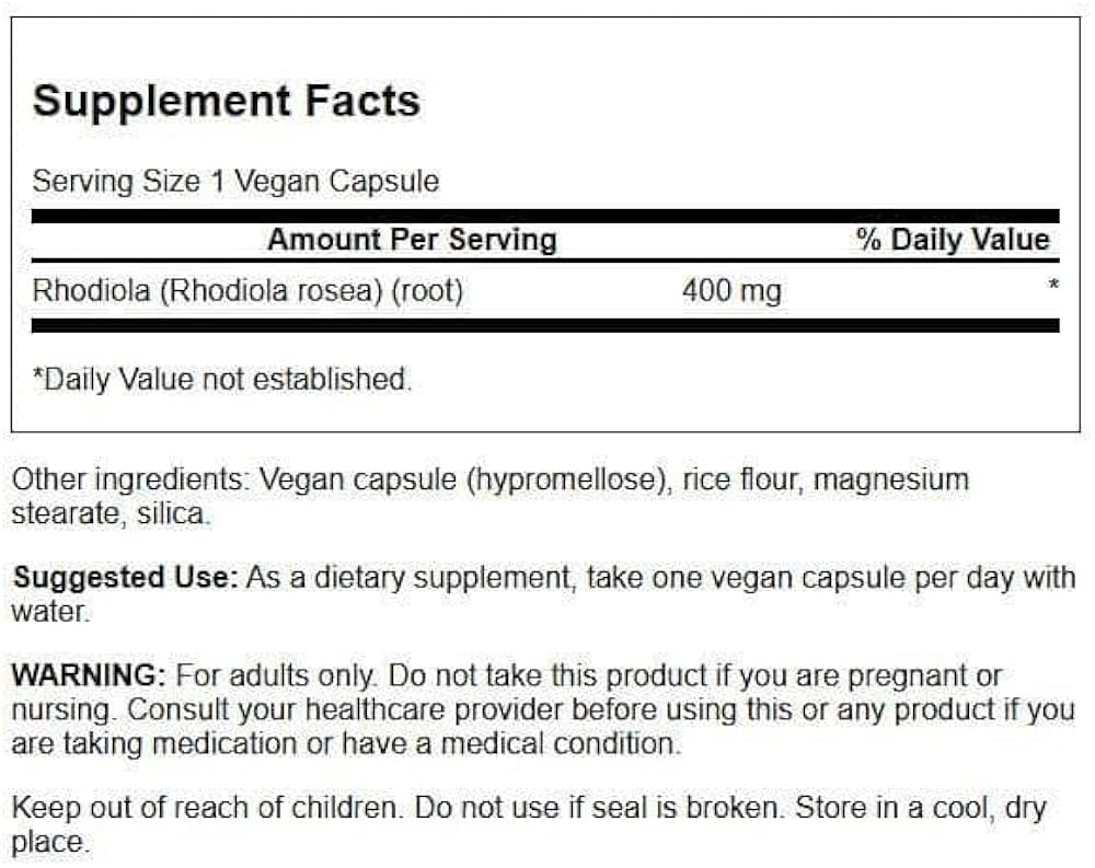 Swanson - Full Spectrum Rhodiola Rosea Root – это растительная добавка, изготовленная из корня родиолы — растения, известного как «золотой корень». Родиола веками использовалась как природный адаптоген, который помогает организму справляться со стрессом, повышать энергию и выносливость, а также улучшать умственную концентрацию. Ее активные соединения, розавины и салидрозид, способствуют регулированию энергетического баланса организма и повышению физической и умственной выносливости, особенно в стрессовые и напряженные периоды.