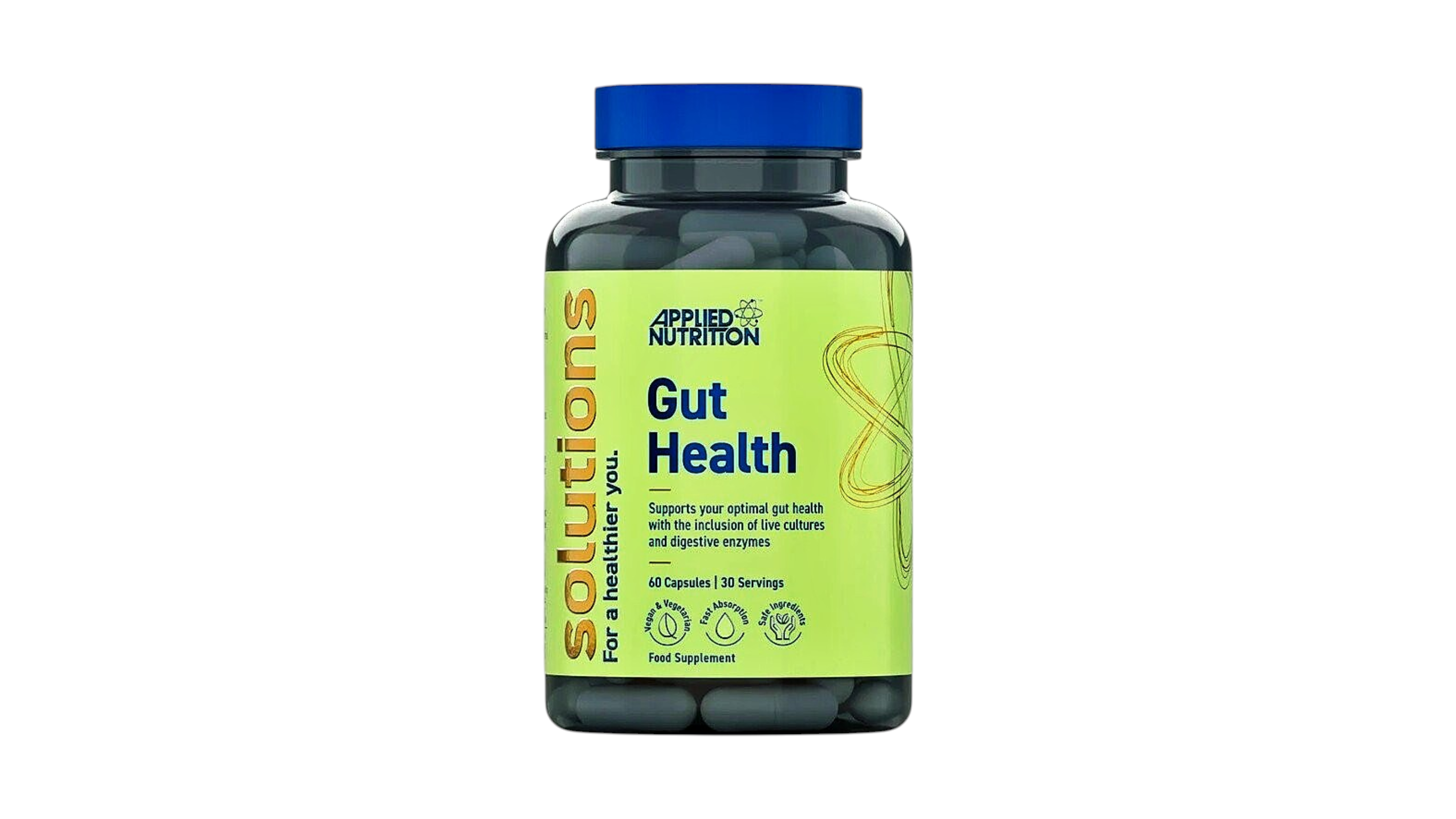 Applied Nutrition – Solutions Gut & Health წარმოადგენს კომპლექსურ საკვებ დანამატს, რომელიც მიზნად ისახავს: