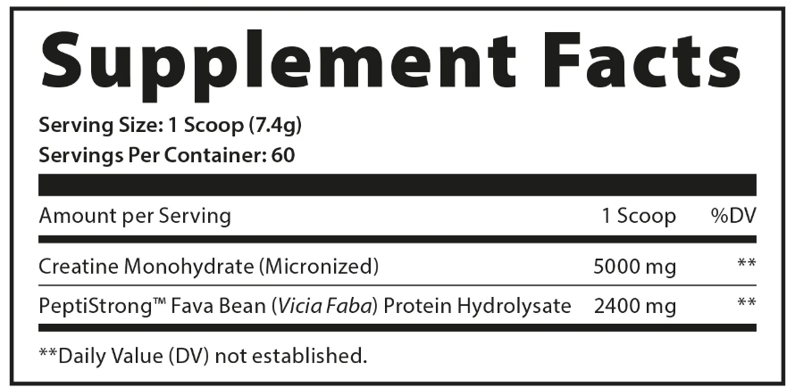 Combines 5 g of creatine monohydrate and 2.4 g of peptides