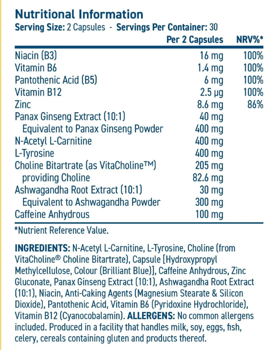 Take 2 capsules daily, preferably in the morning or before intense mental activity, with water.