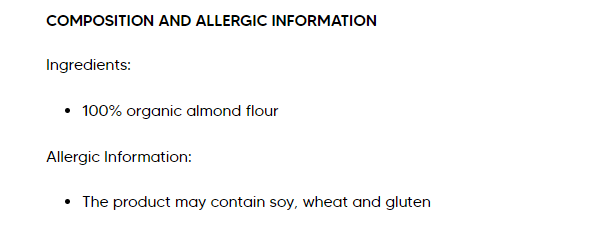 Organic almond flour is dried and powdered blanched almonds. It has a pleasant, slightly sweet taste. The high protein content (22 g / 100 g) makes it highly satiating.
