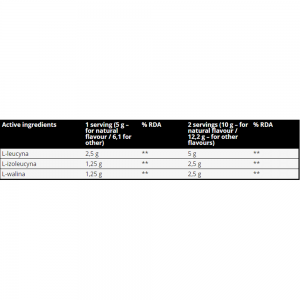 BCAAs are the amino acids L-leucine, L-valine and L-isoleucine, the best amino acids in an amount of up to 10 g per serving. Such a large dose will provide you with excellent protection and faster building of lean muscle mass.