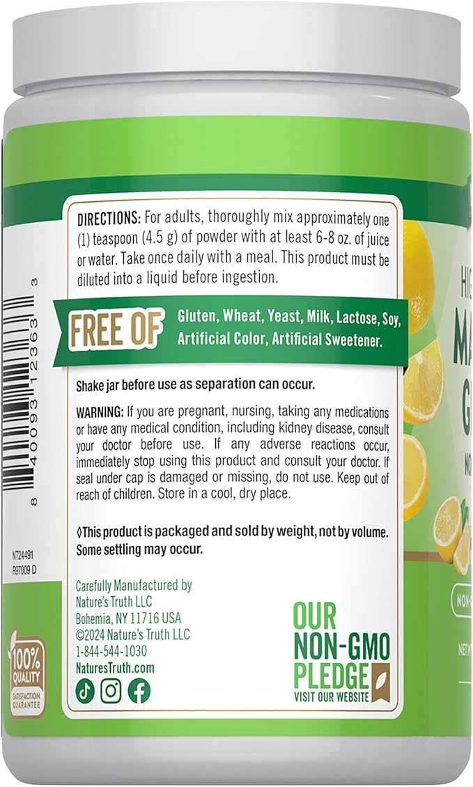 Nature's Truth - Magnesium Glycinate Powder strengthens teeth, supports energy metabolism, helps maintain normal muscle function, contributes to proper neurotransmission, and supports blood coagulation.