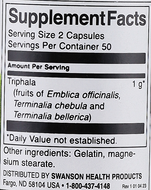Swanson - Triphala is a natural herbal formula originating from traditional Ayurvedic medicine, used for centuries to support the health of the digestive system and overall balance of the body. Triphala combines the fruits of three highly beneficial plants—Amla, Bibhitaki, and Haritaki—which work together to improve digestion, cleanse the body, and promote natural detoxification. This supplement is especially useful for those who suffer from digestive problems, toxin buildup, or want to maintain a light and energetic state naturally.