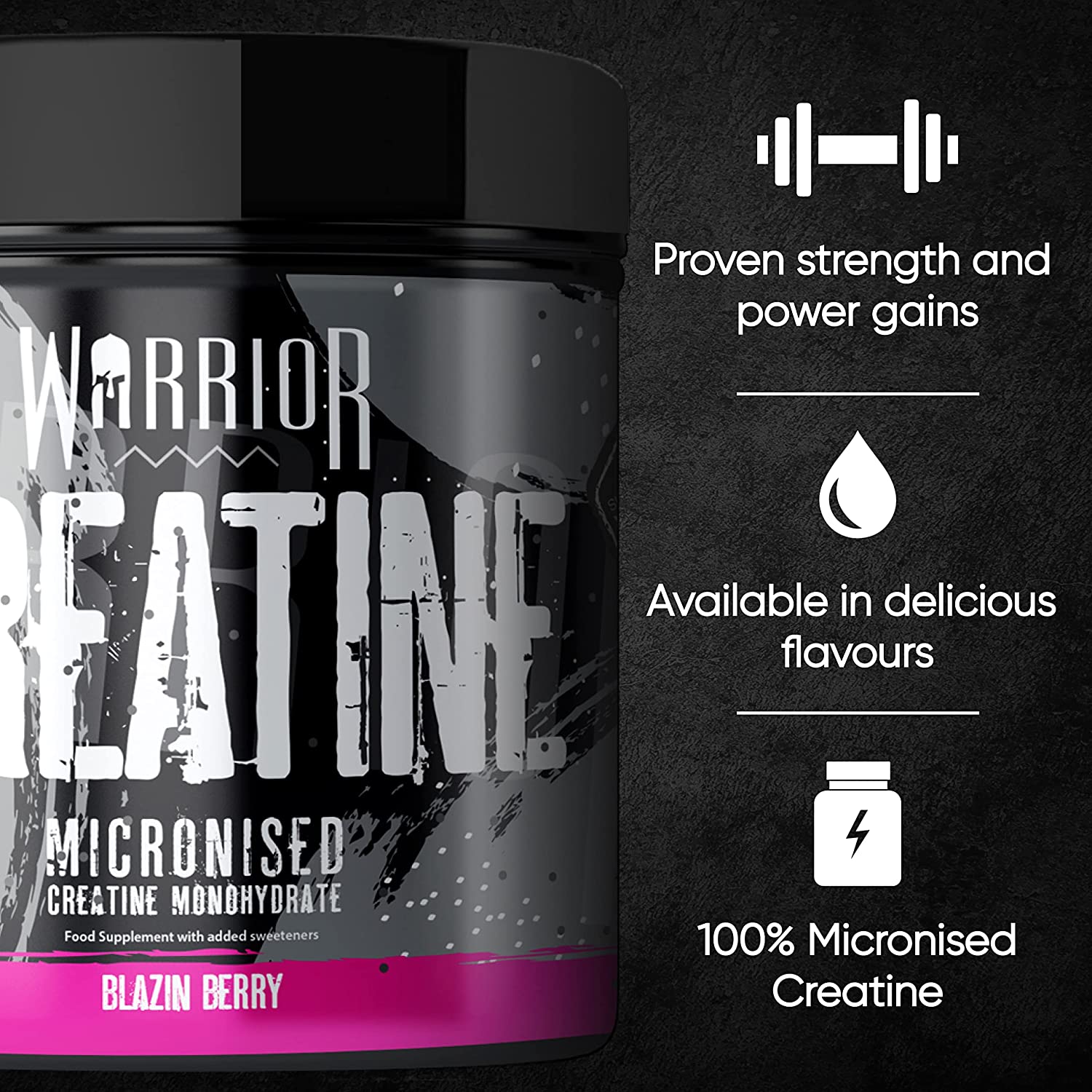 Warrior Creatine is a research backed, 100% pure creatine supplement that brings you all the benefits of ultra-premium quality creatine monohydrate powder without the side effects. Warrior supplements are designed first and foremost to help you perform. To lift more, fight harder, and become better than your previous self. They're designed for true Warriors, and Warrior Creatine is no different. Creatine is one of the most widely researched and clinically approved sports nutrition products in the World and has been proven to help increase physical performance in successive bursts of short term, high intensity exercise. It means if you hit weights, spar, roll or play any high intensity sport, Warrior Creatine will help. Whether you're an MMA fighter, BJJ master, Boxer, Rugby player or hardcore gym user, we've got your back and we're here to help you become a legend!