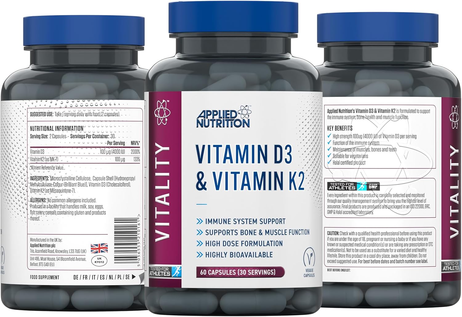 Applied nutrition - Vitamin D3&Vitamin K2 არის საკვები დანამატი, რომელის შემადგენლობაშიც შედის ვიტამინი D3 და დამატებული აქვს K2 ვიტამინი. პროდუქტი შექმნილია, რათა დაეხმაროს ორგანიზმს ამ ორი ვიტამინის დანაკლისის შევსებაში.