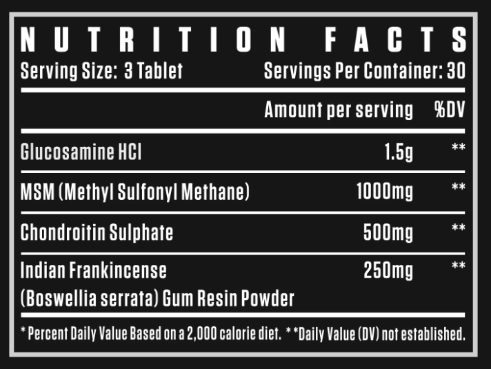 ბოდიბილდერებისთვის მნიშვნელოვანია მოძრაობის დიაპაზონის გაზრდა და მუხლის ტკივილის თავიდან აცილება ხოლო ეს დანამატი შეიცავს საკმარისი რაოდენობით გლუკოზამინის სულფატს, კალიუმის ქლორიდს, რომელიც ხელს უწყობს მოქნილობის გაზრდას და ასევე სახსრებში ხრტილის ბუნებრივ საშენ მასალას წარმოადგენს. ეს დანამატი კარგია სახსრების ჯანმრთელობისთვის ანთების შემცირებით ან სახსრებში ხრტილის დაცვით. ქონდროიტინი ხრტილის კიდევ ერთი საშენი მასალაა, რომელიც შეიძლება ხელს უწყობდეს სახსრების ჯანსაღ ზრდას. ამრიგად, Black Joint Care დანამატი ეფექტურია ნებისმიერი სპორტსმენისა თუ ბოდიბილდერისთვის.