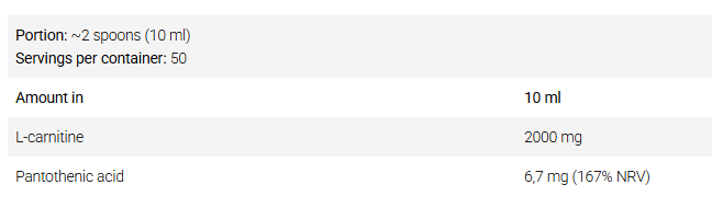 მაღალი კონცენტრაცია: თითოეული პორცია (10 მლ) შეიცავს 2000 მგ სუფთა ლ-კარნიტინს.