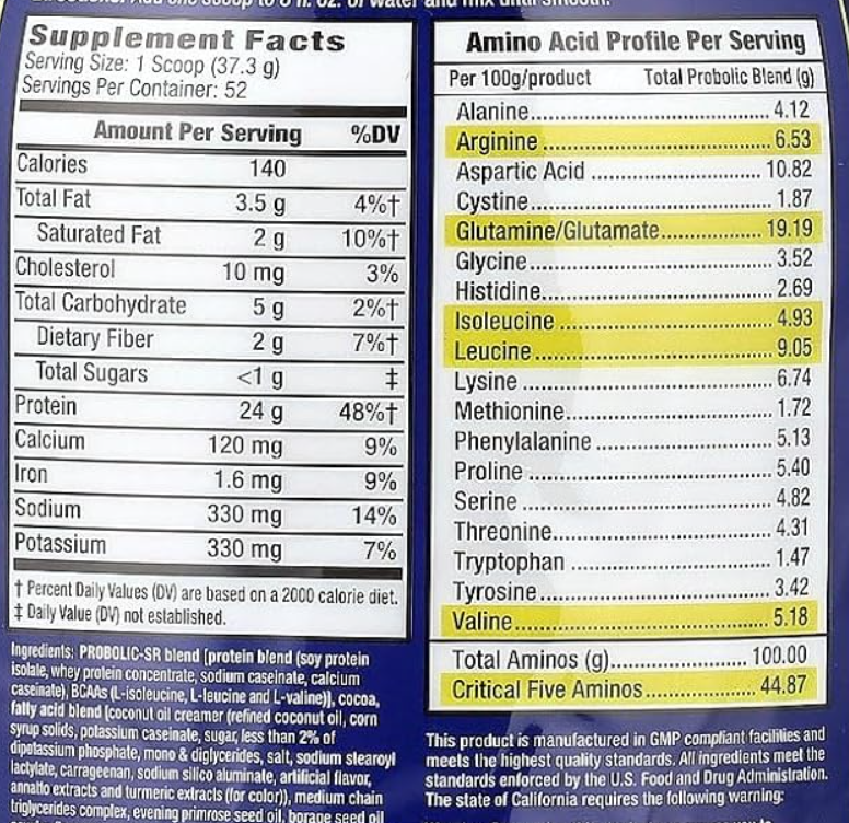 PROBOLIC-SR®-ის ბიოეფექტური, ცილების კომპლექსი სპეციალურად არის შემუშავებული, რათა უზრუნველყოს ცხრავე აუცილებელი ამინომჟავა და ხუთი კრიტიკული ამინომჟავის მაღალი დონე.