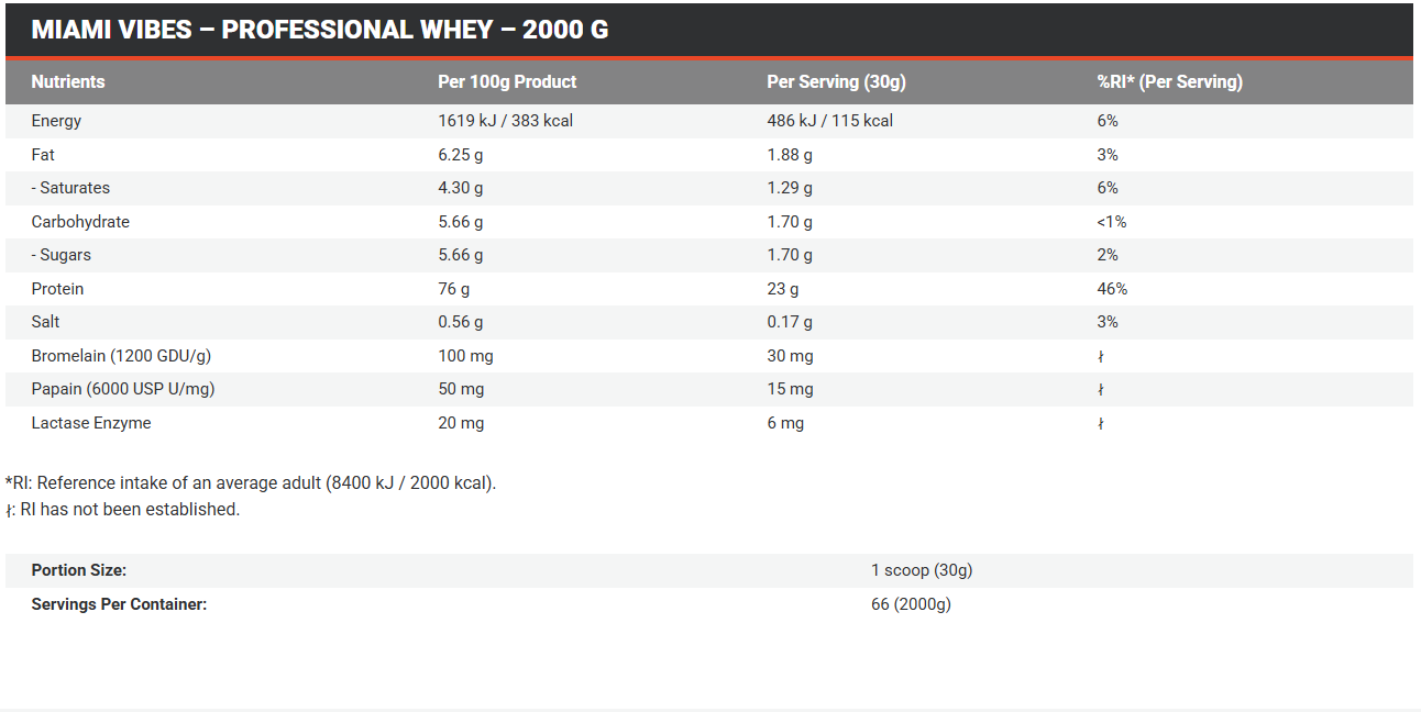 Miami Vibes Professional Whey არის პრემიუმ ხარისხის ცილის წყარო, რომელიც შექმნილია მათთვის, ვისაც სურს მაქსიმალური შედეგის მიღწევა ფიტნესში. ეს პროდუქტი აერთიანებს მაღალბიოლოგიურ ღირებულებასა და დახვეწილ გემოვნურ თვისებებს, რაც მას იდეალურ არჩევნად აქცევს ვარჯიშის შემდგომი აღდგენისთვის. მისი ფორმულა უზრუნველყოფს კუნთოვანი მასის ეფექტურ ზრდას და ორგანიზმის მომარაგებას ყველა საჭირო ამინომჟავით.