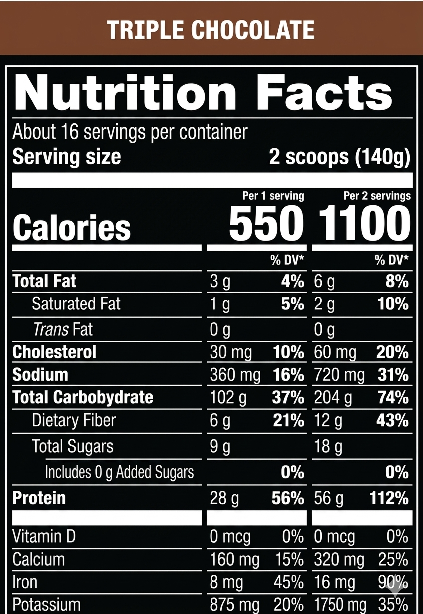 1100 კალორიას კი, რომელსაც გვაწვდის ამ გეინერის ერთი პორცია მაღალი ბიოლოგიური ფასეულობა გააჩნია და უდიდეს დახამრებას გაგვიწევს წონის სწრაფ და ხარისხიან მატებაში.