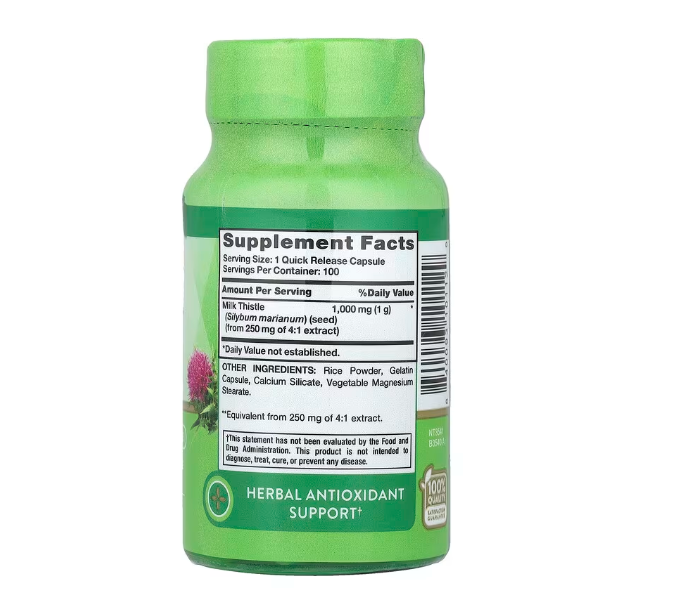 Milk Thistle (რძის ეკალა) არის ერთ-ერთი ყველაზე კარგად შესწავლილი და დაფასებული მცენარეული დანამატი, რომელიც საუკუნეების განმავლობაში გამოიყენება ღვიძლის ჯანმრთელობის მხარდასაჭერად. Nature’s Truth-ის ფორმულა უზრუნველყოფს სტანდარტიზებულ ექსტრაქტს მაღალი ბიოშეღწევადობით და სილიმარინის (Silymarin) აქტიური კომპონენტის მაღალი კონცენტრაციით.