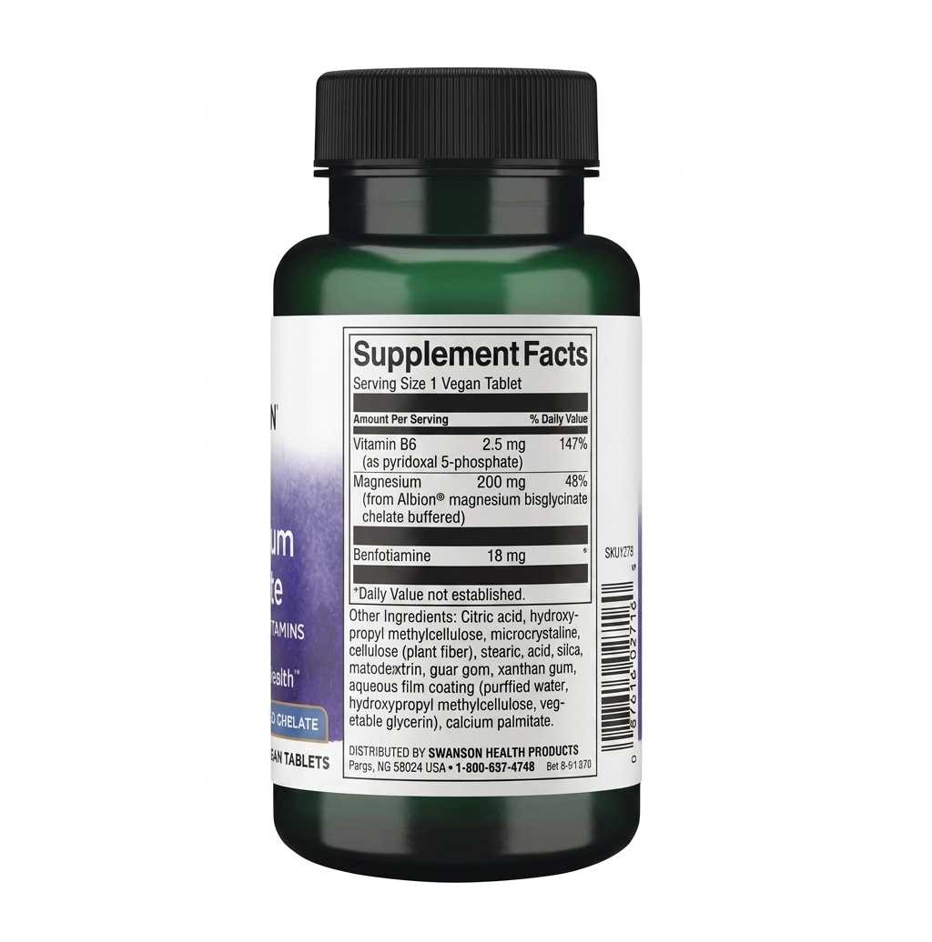 Swanson - Albion Magnesium Glycinate with Activated B Vitamins წარმოადგენს მაგნიუმის უმაღლესი ხარისხის, ხელატურ ფორმას, რომელიც შექმნილია თქვენი ნერვული სისტემის, კუნთებისა და მშვიდი ძილისთვის. Albion®-ის დაპატენტებული ტექნოლოგია უზრუნველყოფს მინერალის მაქსიმალურ ათვისებას ყოველგვარი კუჭ-ნაწლავის დისკომფორტის გარეშე.
