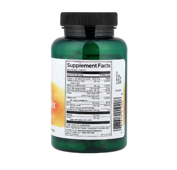 Swanson - Super Stress B-Complex with Vitamin C არის სპეციალურად შემუშავებული ფორმულა მათთვის, ვინც ყოველდღიურად გადის მაღალ ფიზიკურ თუ გონებრივ დატვირთვას. კომპლექსი აერთიანებს B ჯგუფის ყველა მნიშვნელოვან ვიტამინს და გაძლიერებულია 500 მგ C ვიტამინით, რაც უზრუნველყოფს თქვენი ნერვული სისტემის სტაბილურობასა და იმუნიტეტის სიმტკიცეს.