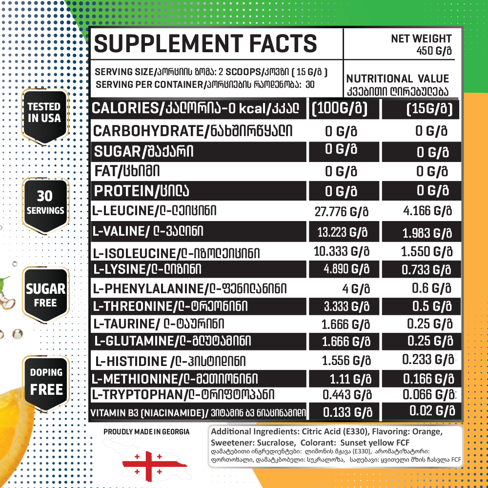 Vitamin Power - EAA Essential Amino Acids - ის ძირითადი თვისებები და მახასიათებლები: