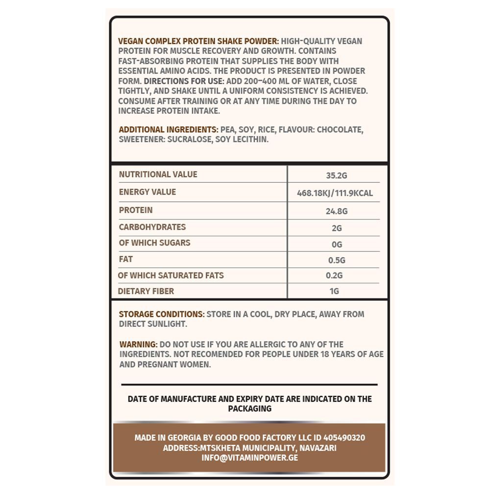 Vitamin Power - Vegan Protein Shake Powder: სუფთა ენერგია მცენარეული წყაროდან