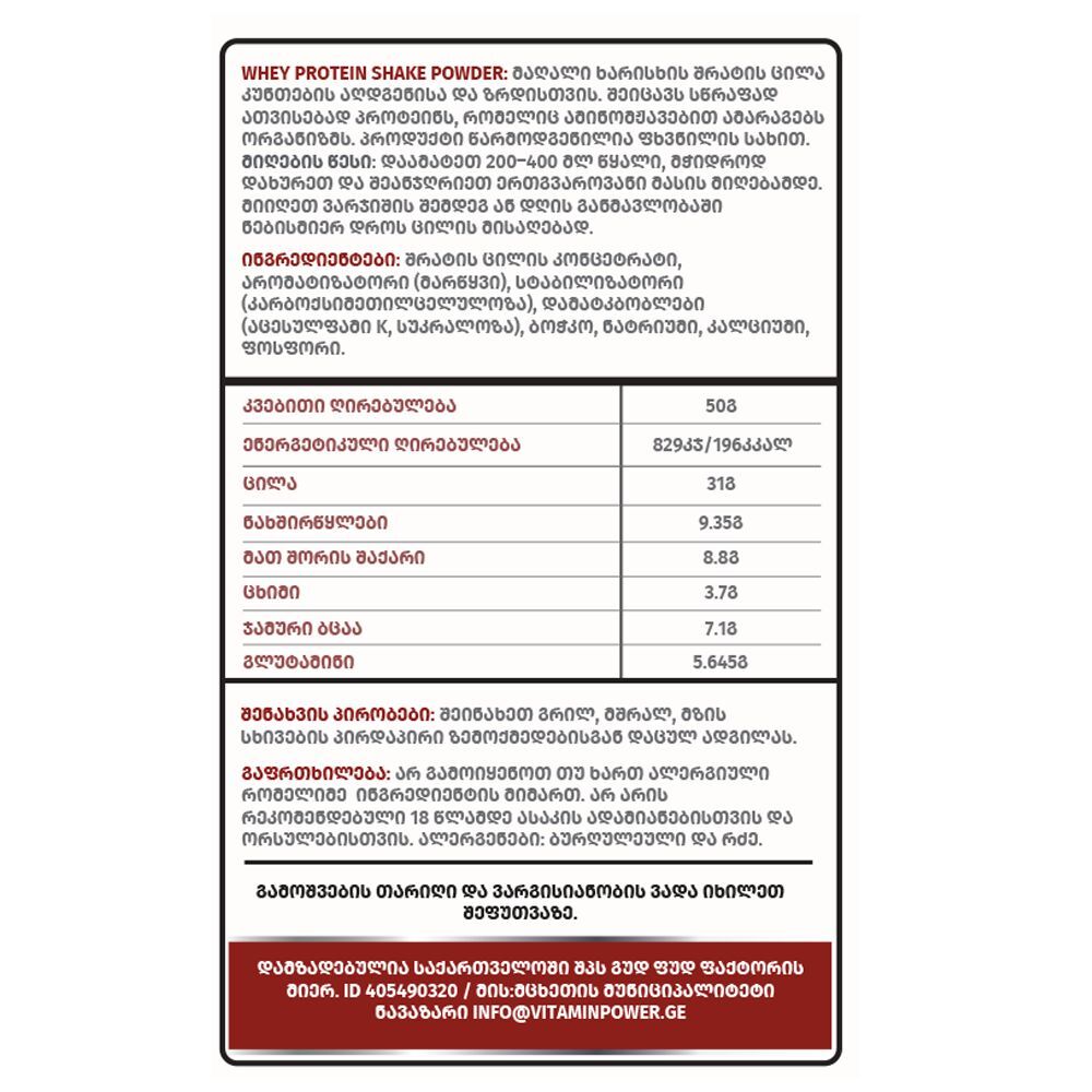 Vitamin Power - Whey Protein Shake Powder: პრემიუმ ხარისხის ცილა კუნთების მაქსიმალური ზრდისთვის